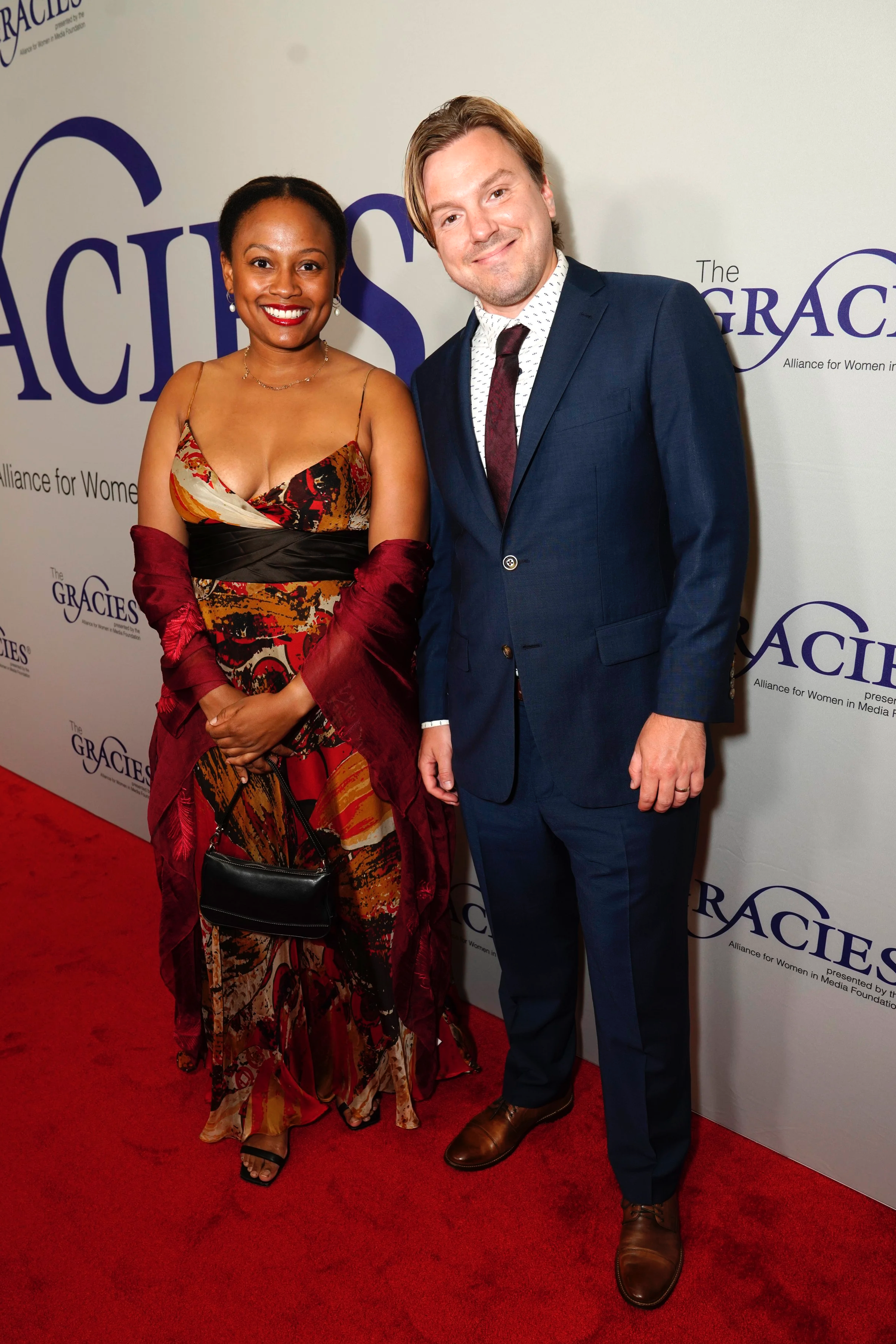 Halima with producer John Fecile at the 2024 Gracie Awards. They won the Best National Radio Award for their story “Road to Boito.” Photo Credit: Presley Ann via Getty Images (2024)